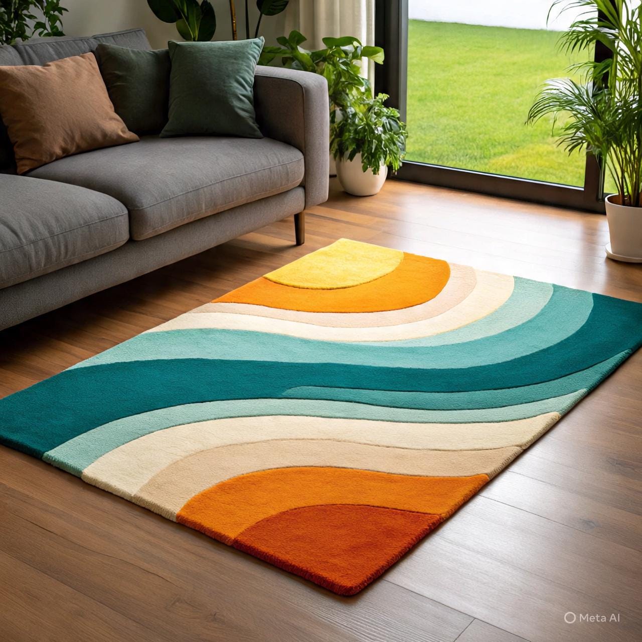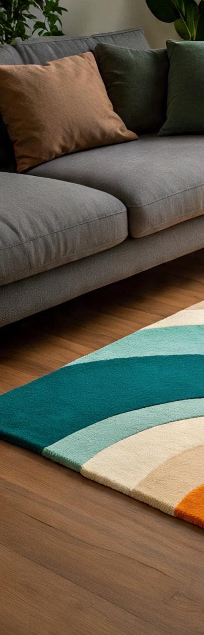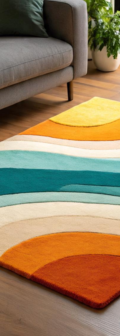 Hand-Tufted Wool Rug: Modern Wave Design, Living Room Bedroom Decor