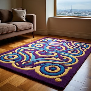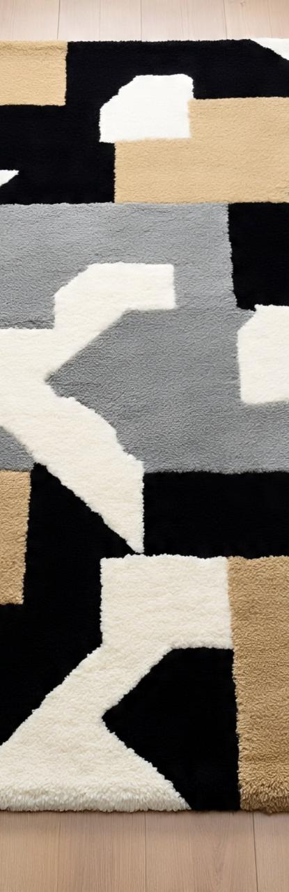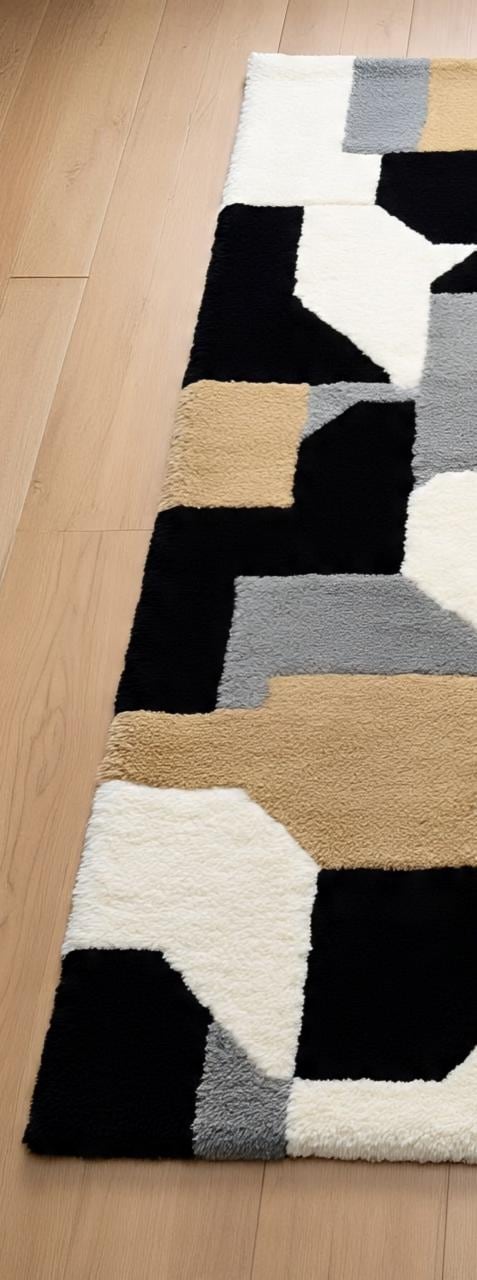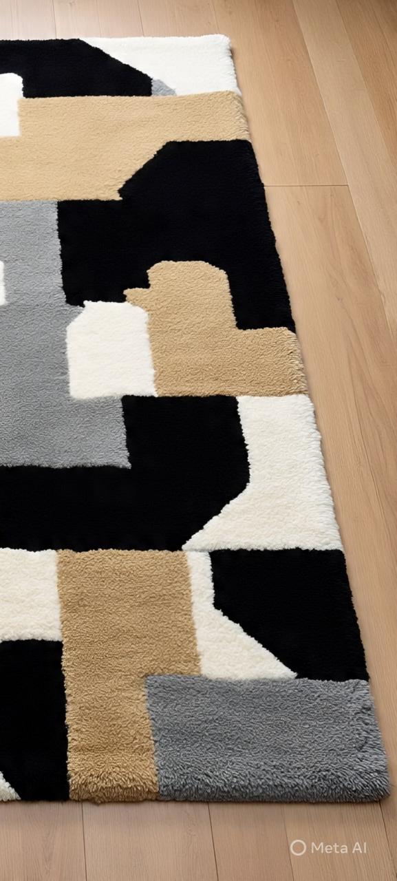 Abstract black beige hand -tufted Rug for living room bedroom
