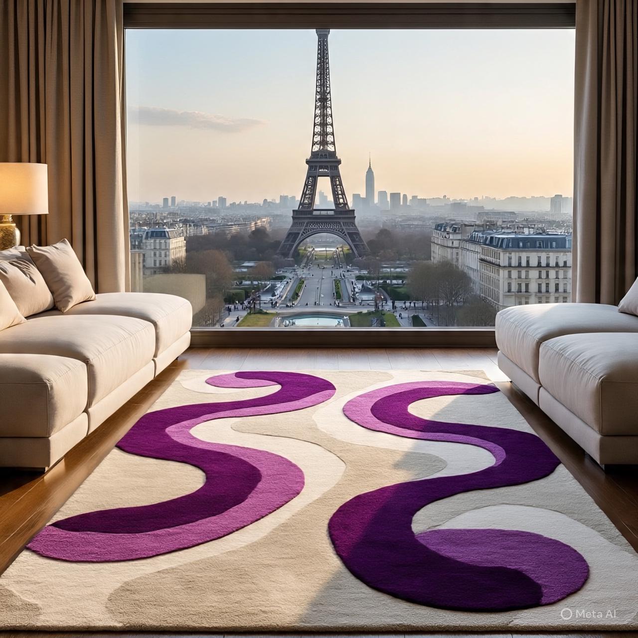 Hand-Tufted Wool Rug: Groovy Purple Abstract Design