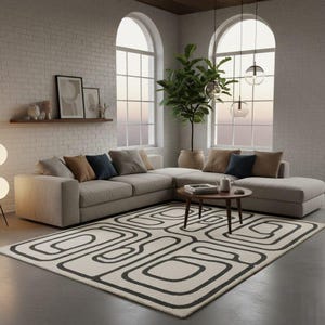 Irregular Shaped Cream design hand -tufted Rug for living room bedroom