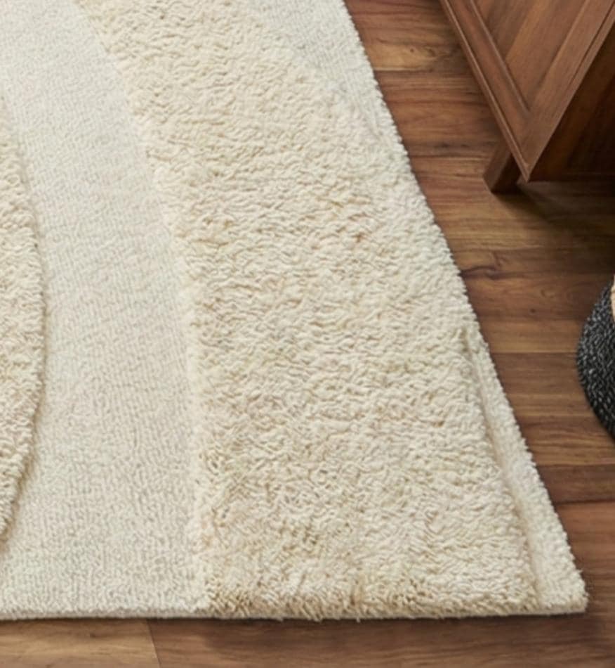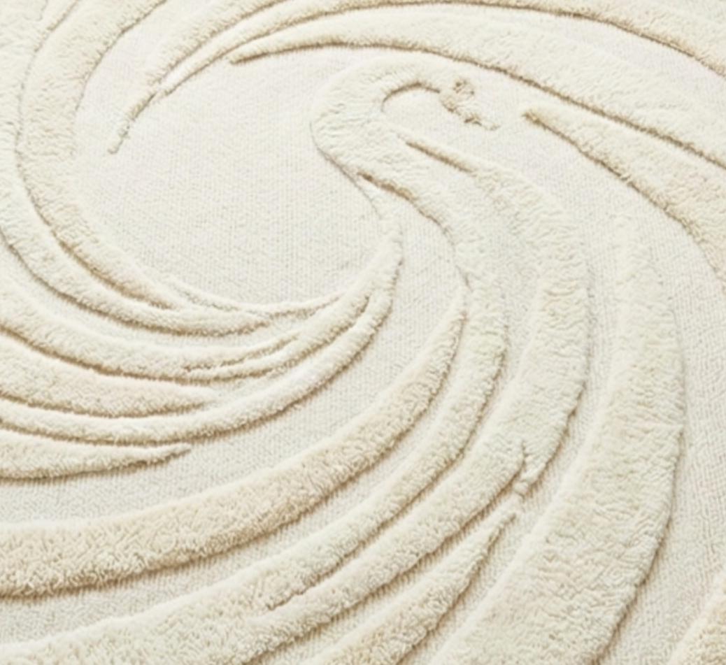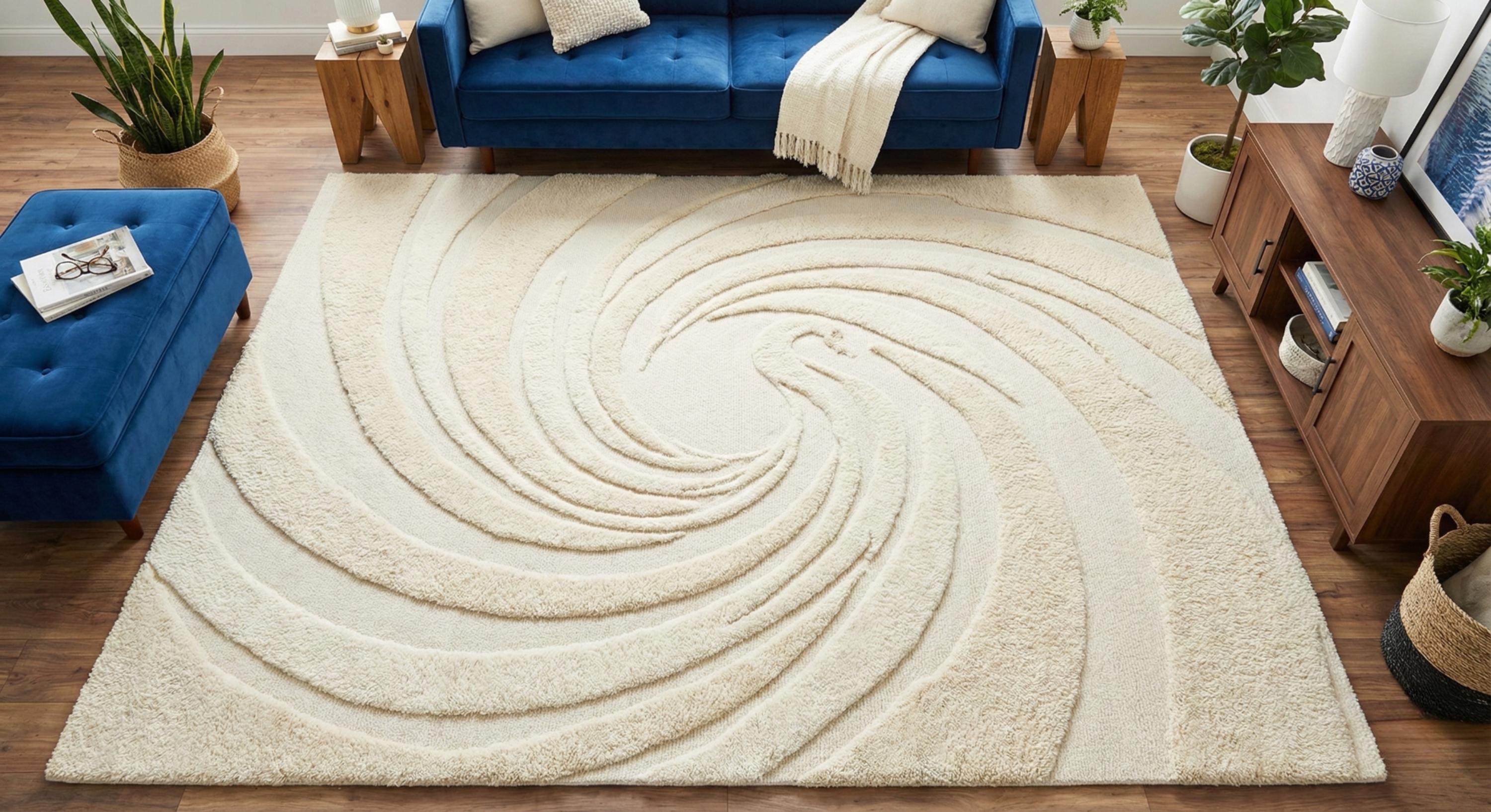 Minimal Abstract Swirl Area Rug, Handmade Tufted Cream Rug, Modern Living Room Bedroom Carpet