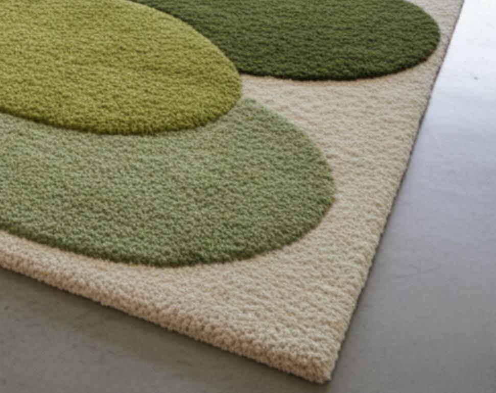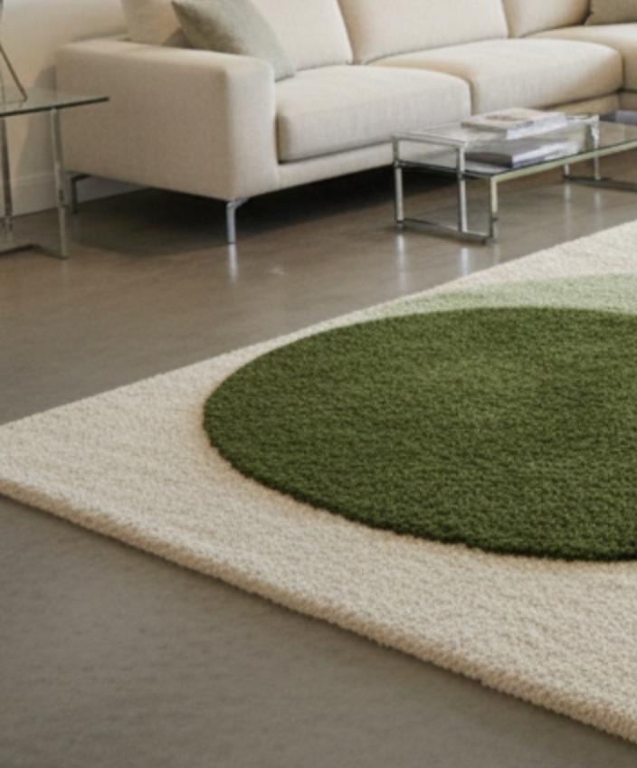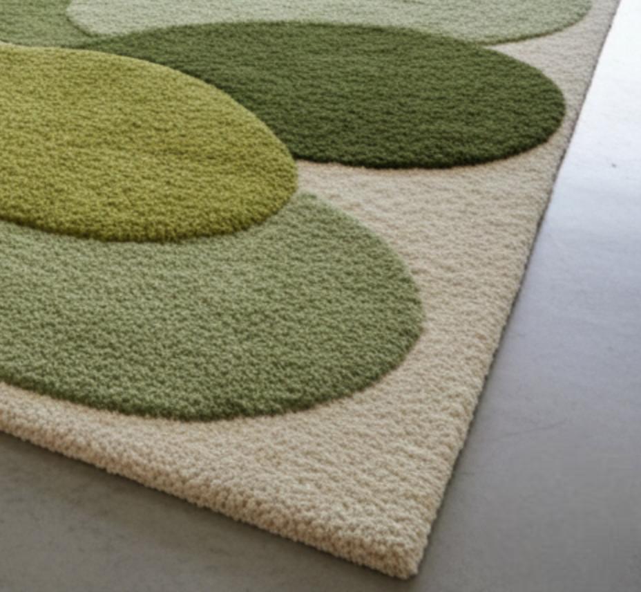 Hand Tufted Wool Rug, Abstract Green Geometric Carpet