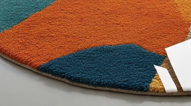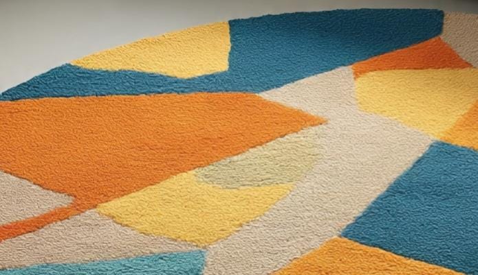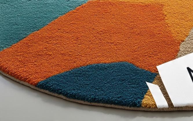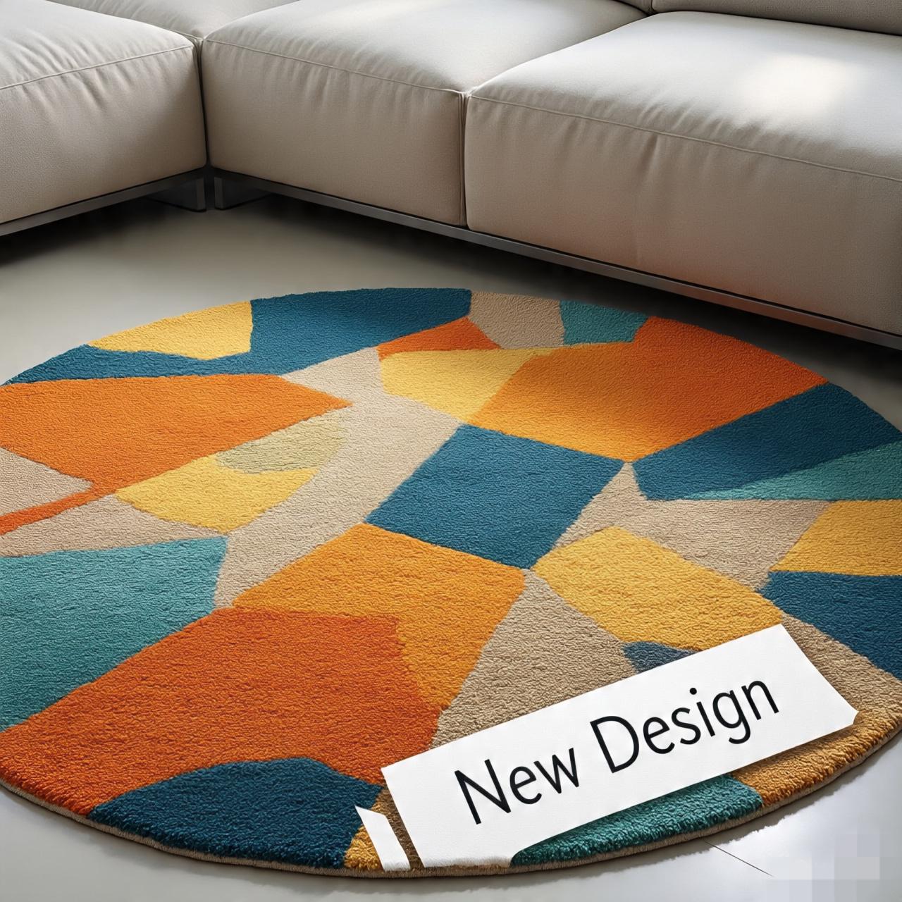 Hand-Tufted Wool Round Rug – Abstract Geometric, Mid-Century Modern