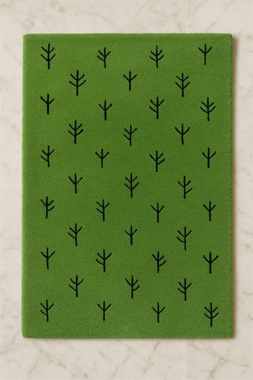The Minimalist Choice: Hand-Tufted Forest Green Rug - Minimalist Pine Tree Pattern