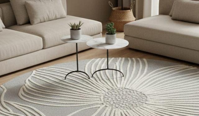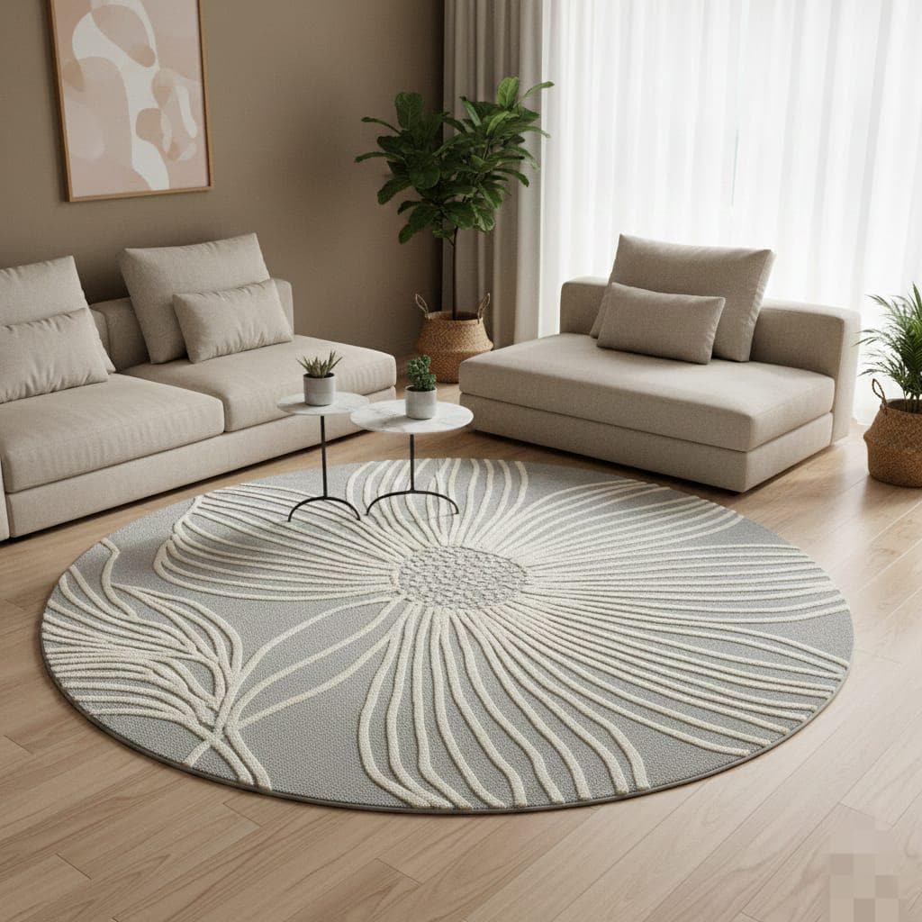 Hand-Tufted Wool Area Rug – Grey Floral 3D Texture