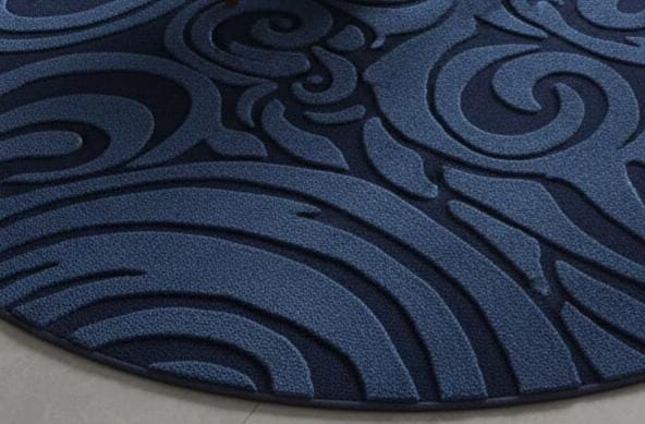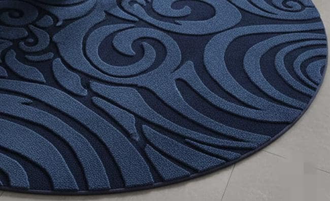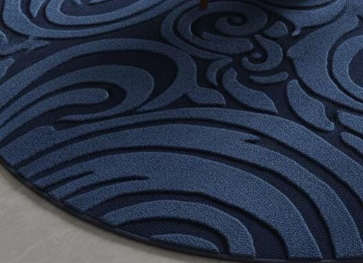 Hand-Tufted Navy Blue Round Rug – 3D Swirl Wool Carpet