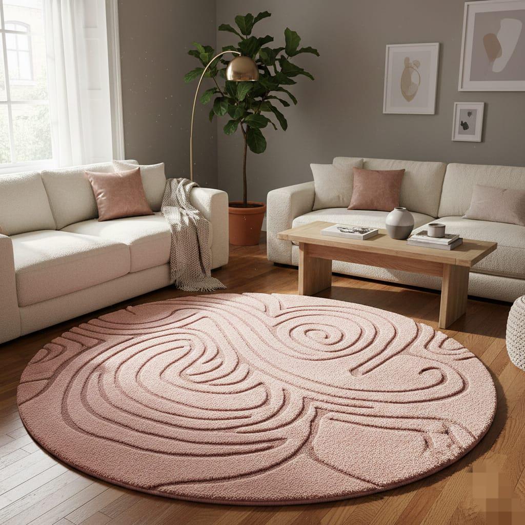 Hand-Tufted Blush Pink Wool Rug – Meditative Spiral Design