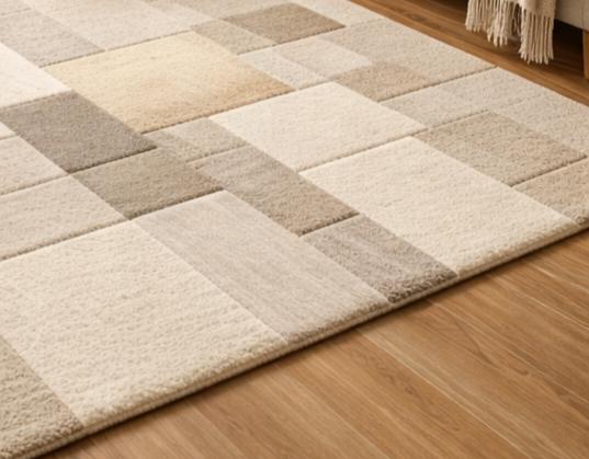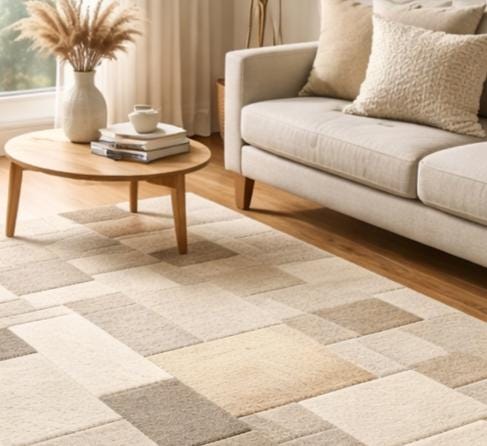 Hand-Tufted Wool Rug | Beige Cream Geometric Pattern
