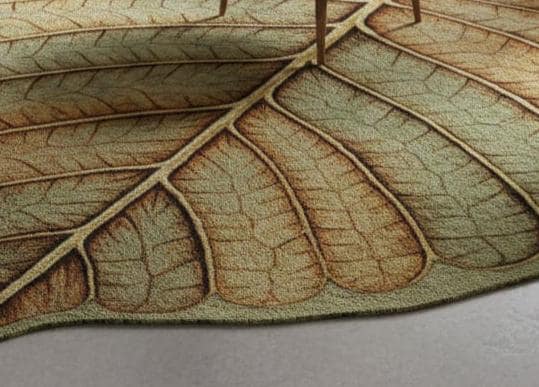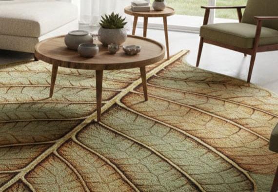 Botanical Leaf Area Rug, Nature Inspired Wool Carpet, Modern Home Décor